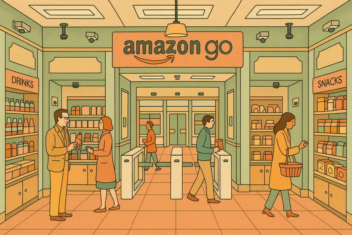 An AI-powered retail experience: Amazon Go stores use computer vision and automation to deliver a checkout-free, personalized shopping journey.
